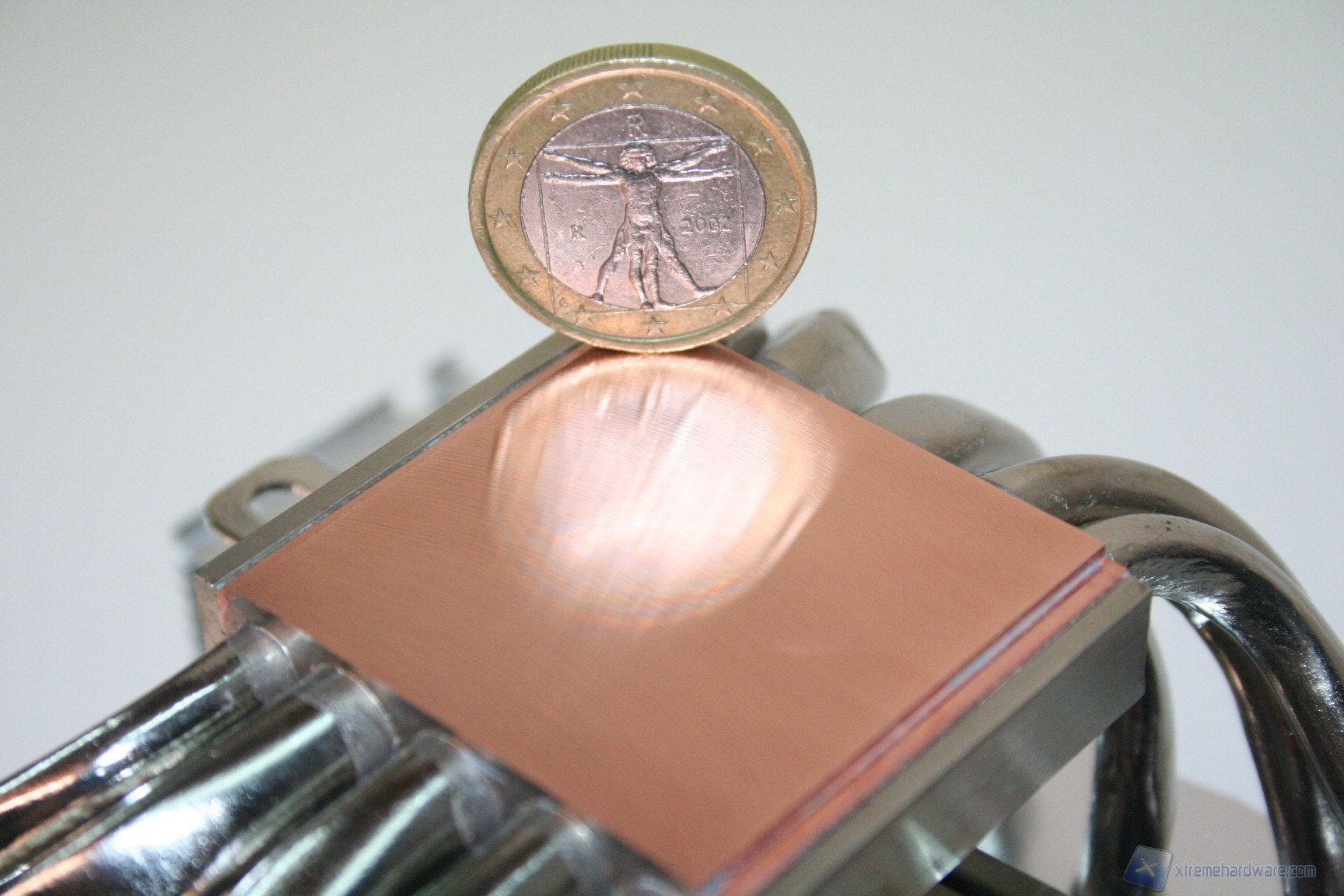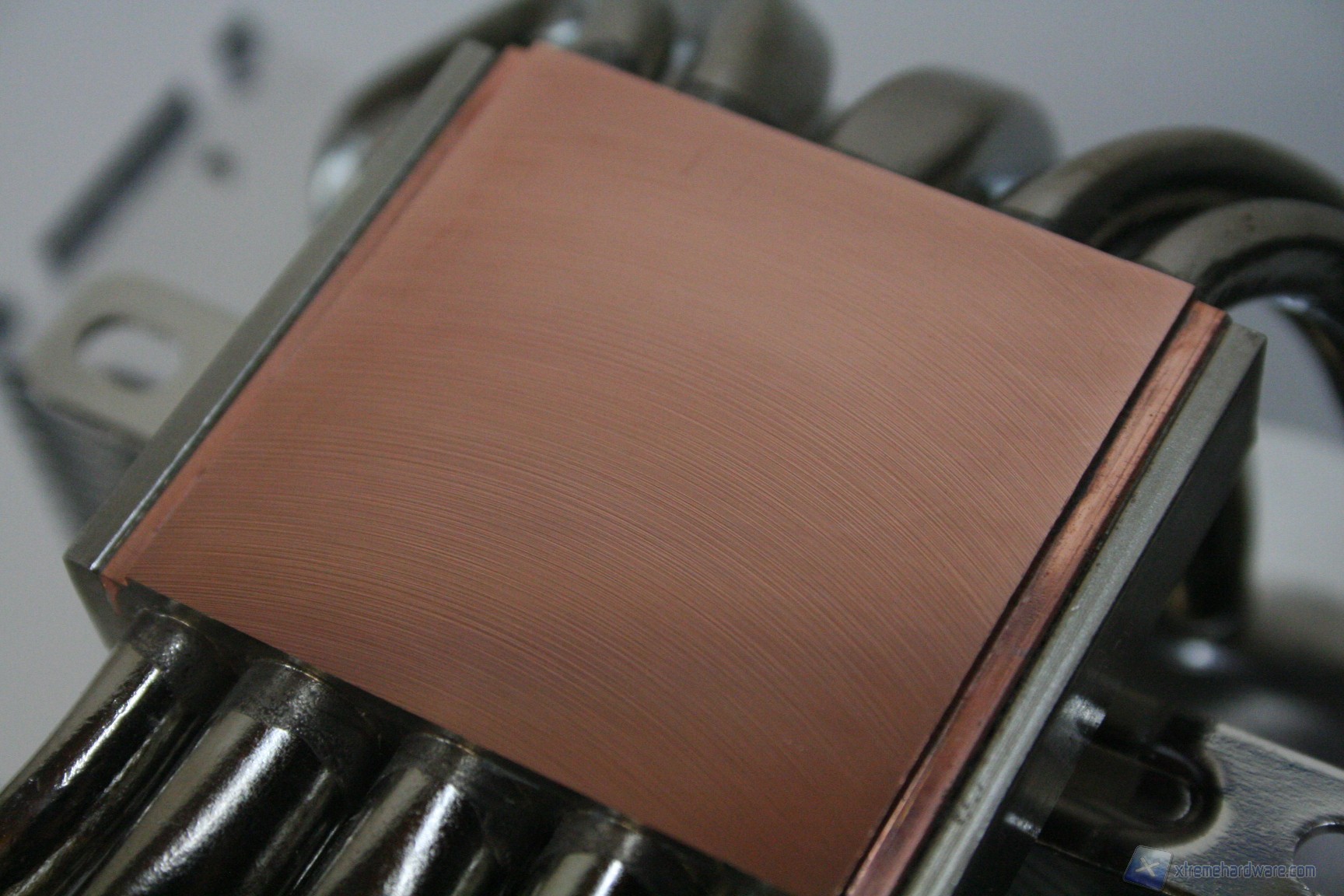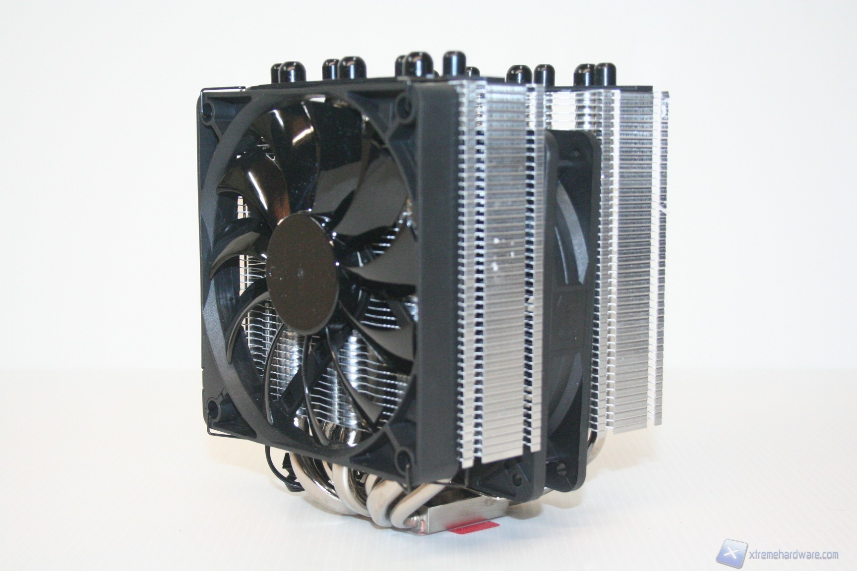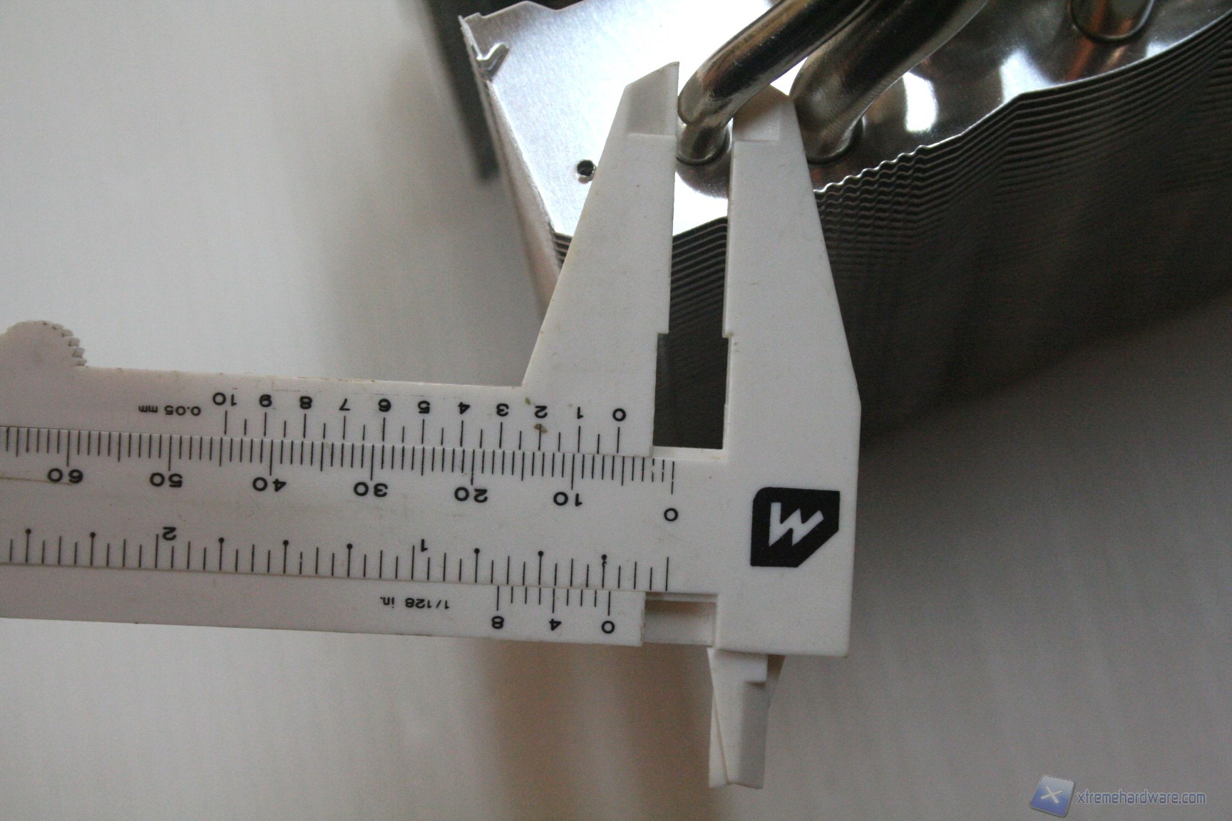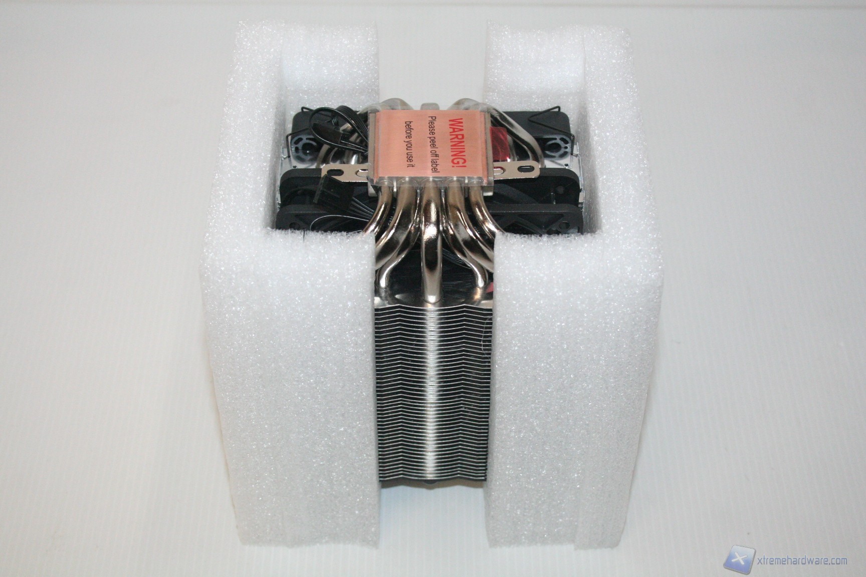 La struttura fa parte della classica tipologia a doppia torre di raffreddamento, costituita da due corpi dissipanti attraversati però da un numero molto elevato di alette, addirittura 7, strutturate a “U” e ottimamente distribuite sull’intero volume. La particolarità di questo modello e della ripartizione delle heatpipes può essere evinta dalla fotografia seguente; precisiamo che è un pattern già visto sul modello, da noi recensito, Gelid GX-7:
